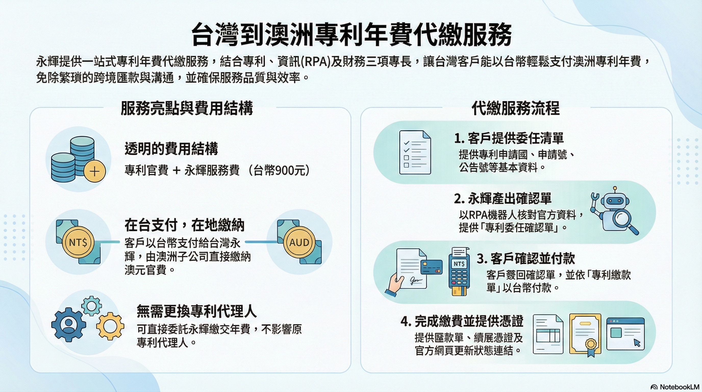 台灣企業或個人有澳洲專利,永輝專利年費之代收代付服務流程為何?